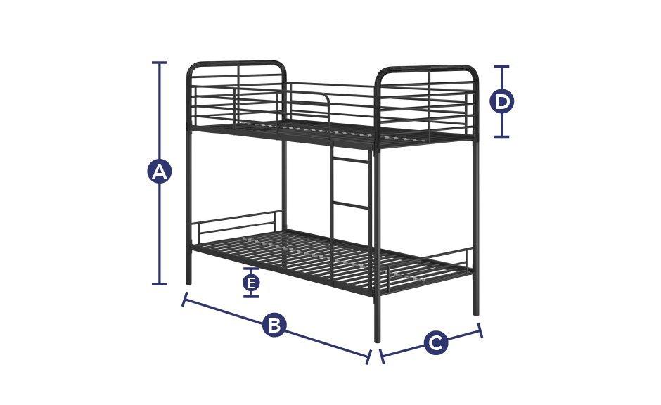 The Westbrook Bunk Bed effortlessly combines modernity and style, making it a versatile addition to any children's bedroom. This space-saving solution is perfect for siblings and sleepovers, providing two comfortable single sleeping areas. With its black powder-coated finish and minimalist design, this bunk bed creates a supportive and stylish sleeping arrangement. The accompanying ladder can be securely attached to either end of the frame, allowing you to customise the layout to suit your needs. Additional information: Please note that due to the height of the frame, the top bunk is recommended for children aged 6 and above. For added peace of mind |
