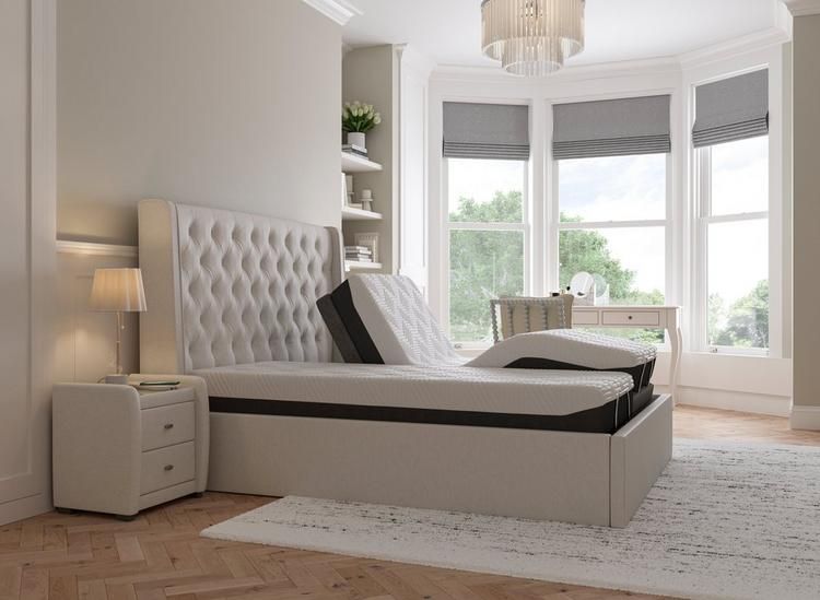 Want an adjustable bed that makes a style statement? The Deacon features a bold yet simple design, upholstered in soft woven fabric in your choice of classic colours, to complement any bedroom interior. Its high headboard creates a touch of drama, while button detailing gives this bed frame an elegant and luxurious feel.