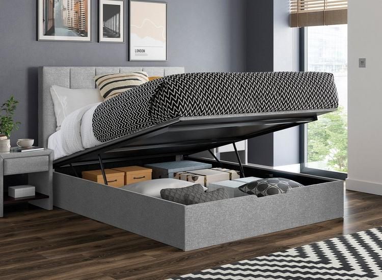 Upgrade your bedroom with the modern and stylish Ealing Ottoman Bed Frame. This bed frame features a vertically stitched padded headboard and an ultra slimline ottoman base, making it a practical storage solution for those short on space. Upholstered in a slightly textured woven fabric, it is available in two elegant colours - grey and silver.