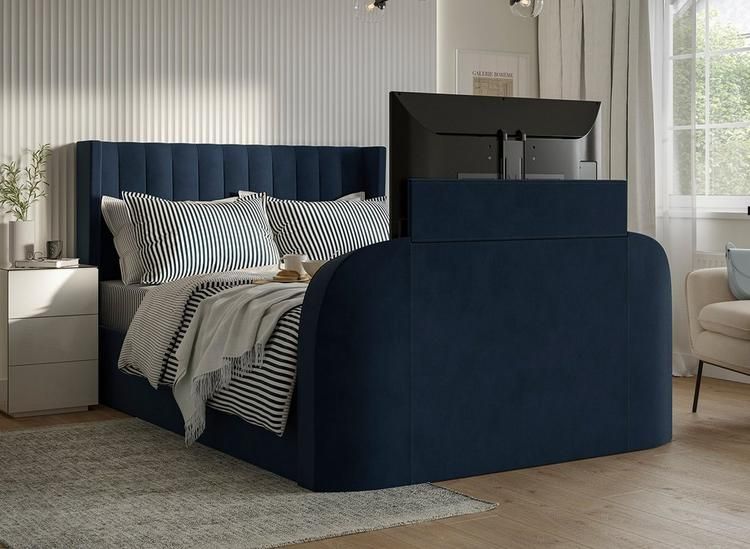 Introducing the Foley TV Bed, our most competitively priced TV bed with everything you need to unwind in style. Whether you love to game in bed or catch up on your favourite shows before some shut eye, the Foley features a high-quality LG SMART TV discreetly tucked away in its foot end, with a range of upgrades available to suit your preferences. The high headboard is complete with cocooning winged sides in a super soft velvet finish, so you’ll feel instantly cosy when it’s time to wind down.