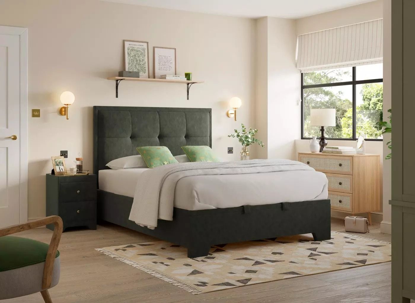 The Hopkins' geometric high head end is button finish and padded for a great look and comfort. We've added wooden cross rails to enhance the life of your bed frame too, not to mention the dual handle to make storage access even more simple.