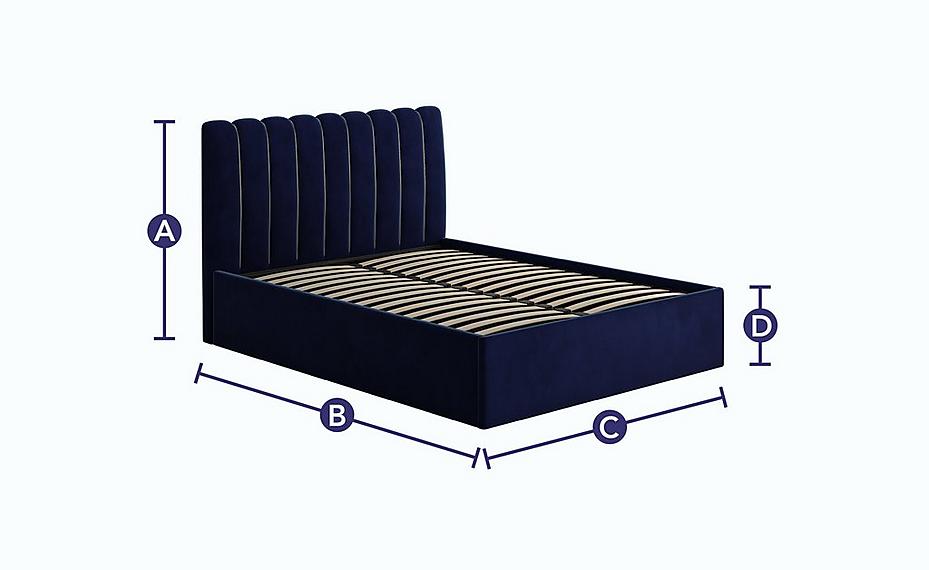 Marvel at the instant luxury the Mount velvet-finish bed frame brings to your bedroom. The design details are all there for you to see and feel; super-soft velvety upholstery, a glinting fluted headboard and classy, dark wood-effect finish. The Mount bed frame in opulent navy is a perfect choice with gold accents. Or, for a lighter, more neutral bedroom option, it comes in grey with a silver finish too.