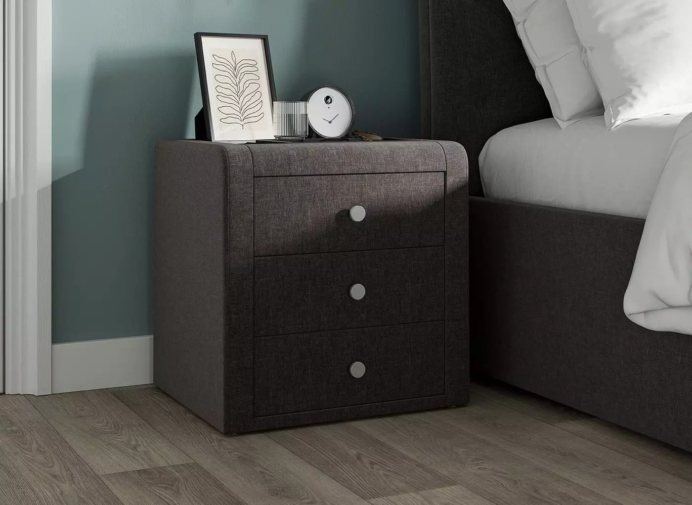 The Paris Bedside Table is beautifully simple and stylish, the perfect match for the gorgeous Paris bed. It’s upholstered in a super soft chenille fabric, available in a choice of sophisticated grey or natural tones and finished with brushed nickel button handles.