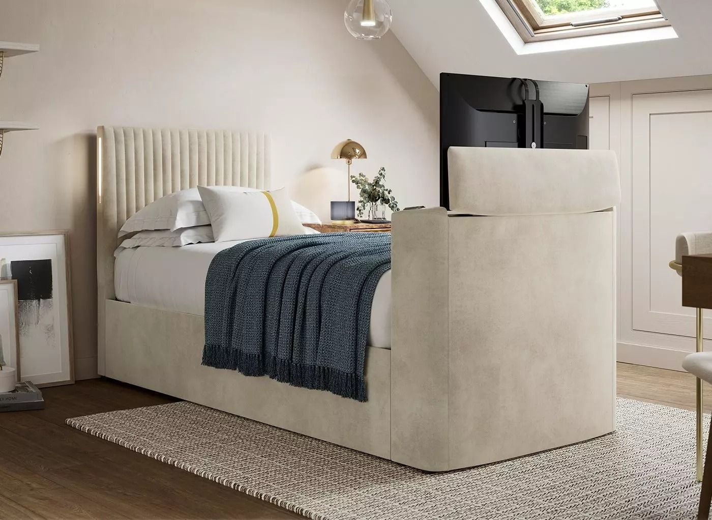 The built-in LG Smart TV is perfect for movie marathons or gaming. Set the scene with mood lighting in the headboard, creating an instantly cosy atmosphere. When it's time for bed, the TV disappears into the foot end at the touch of a button.