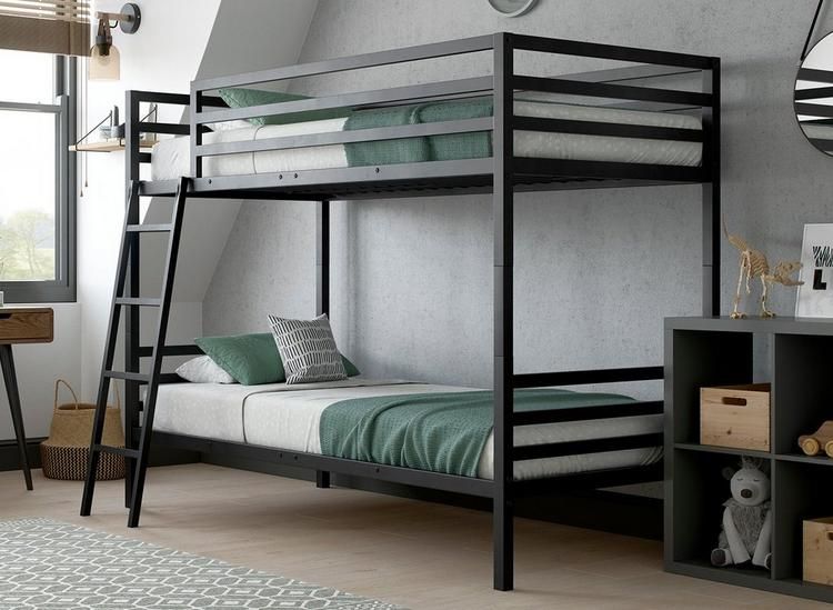 Elevate your older children or teens' bedroom with our sleek Saturn bunk bed. This modern piece features durable metal construction with industrial-inspired squared finials in a stylish matte black finish.