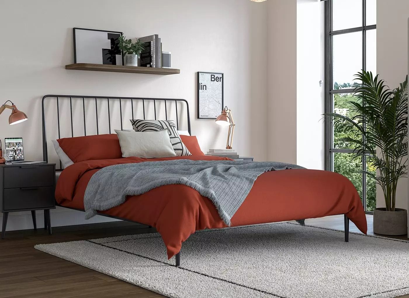 Everything you need for a stylish bedroom, at a price to get excited about. The Worthington bed frame has a sleek metal design with a painted black finish, accented by smooth rounded edges. Its low foot end is perfect for snug spaces, whether you’re designing a stylish guest suite or awesome teen hangout. Say hello to a bed that can be reimagined time and time again, with its laidback